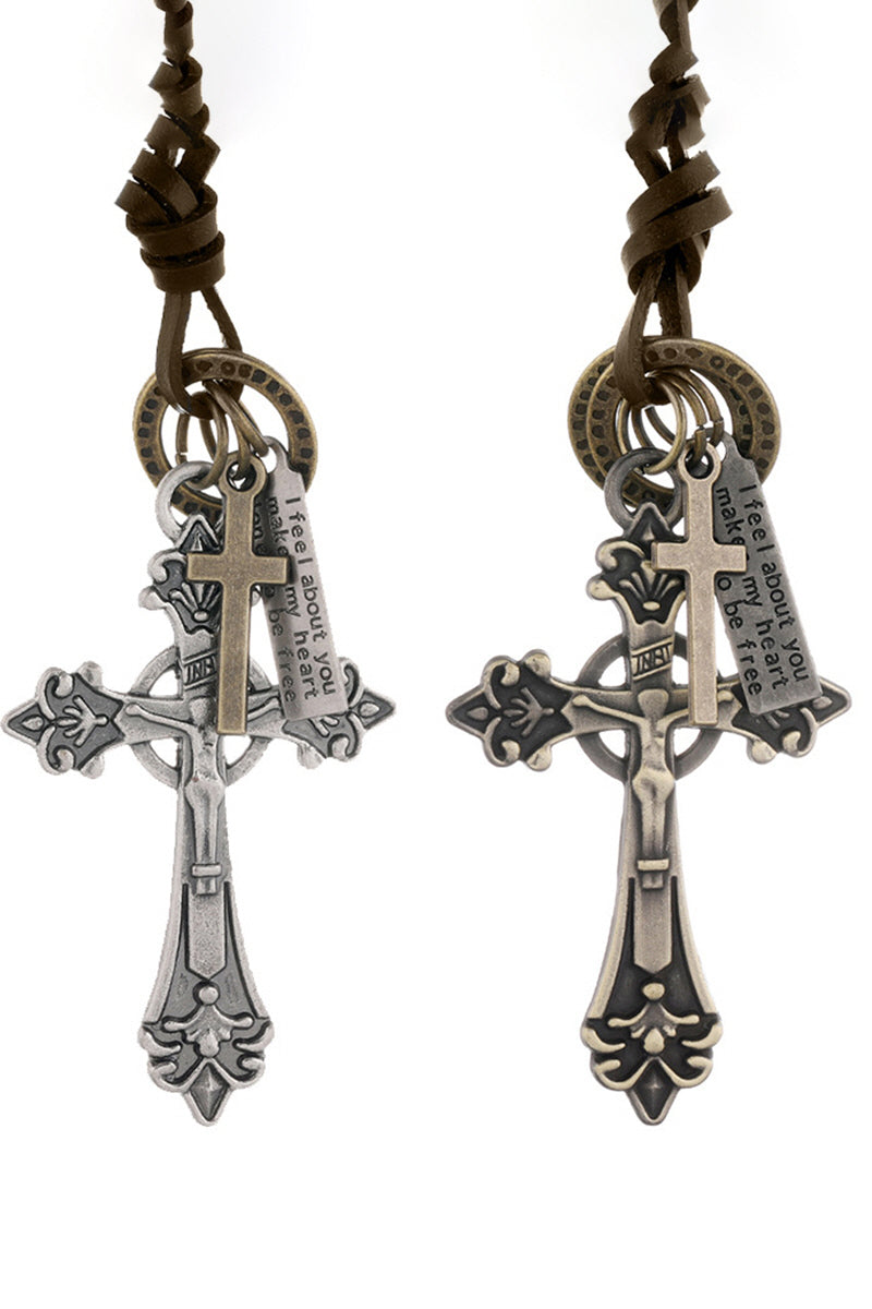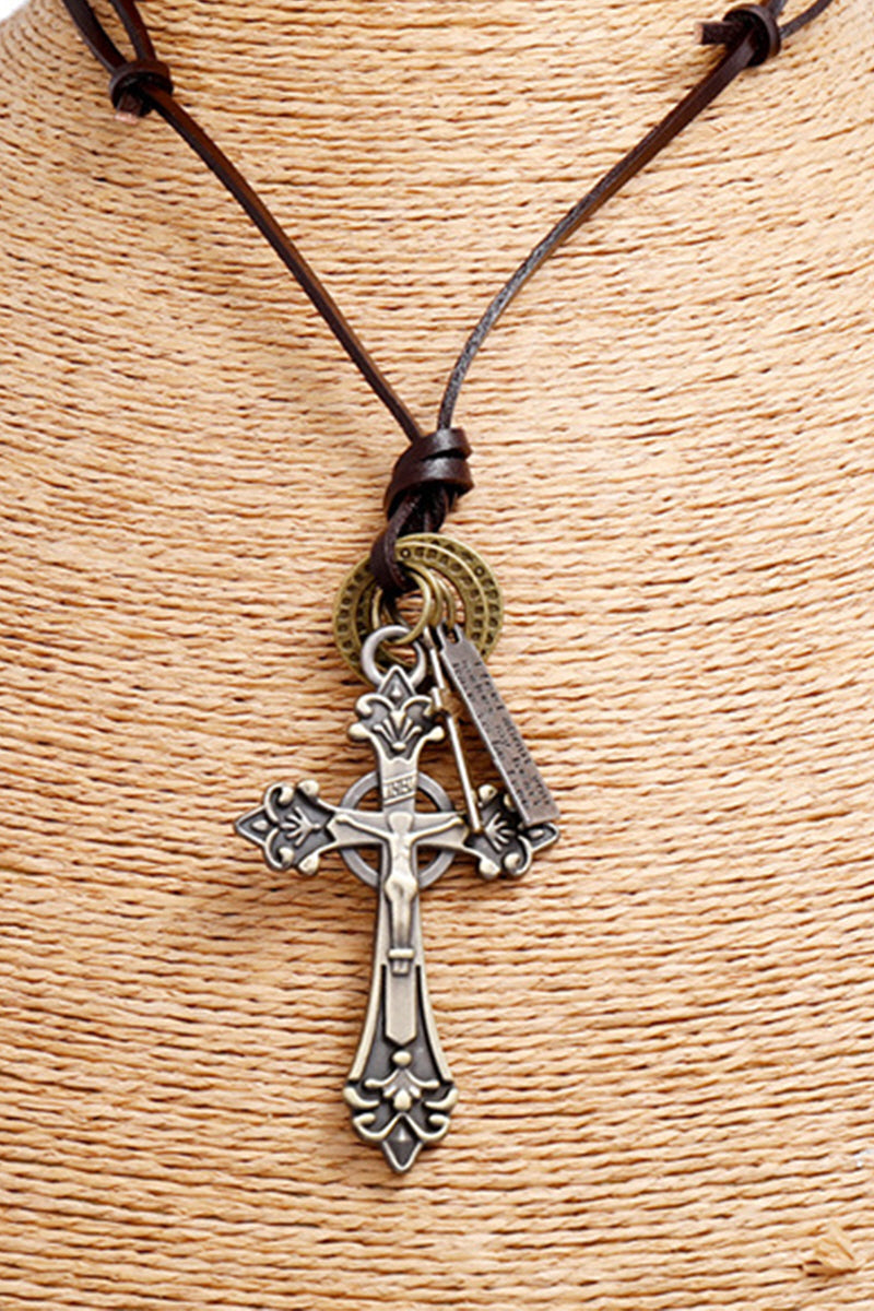 xRETRO PU ADJUSTABLE CROSS PENDANT, 100% ALLOY, MADE IN CHINA, , CROSS NECKLACE,PENDANT NECKLACES, PENDANT NECKLACE,MATCHING NECKLACE,SILVER NECKLACE MEN,