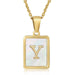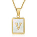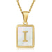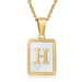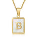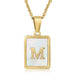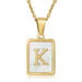 Cwaje1917_Square Stainless Steel White Shell Letter Necklace