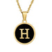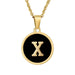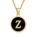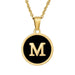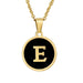 Cwaje1935_Round Stainless Steel Black Shell Letter Necklace