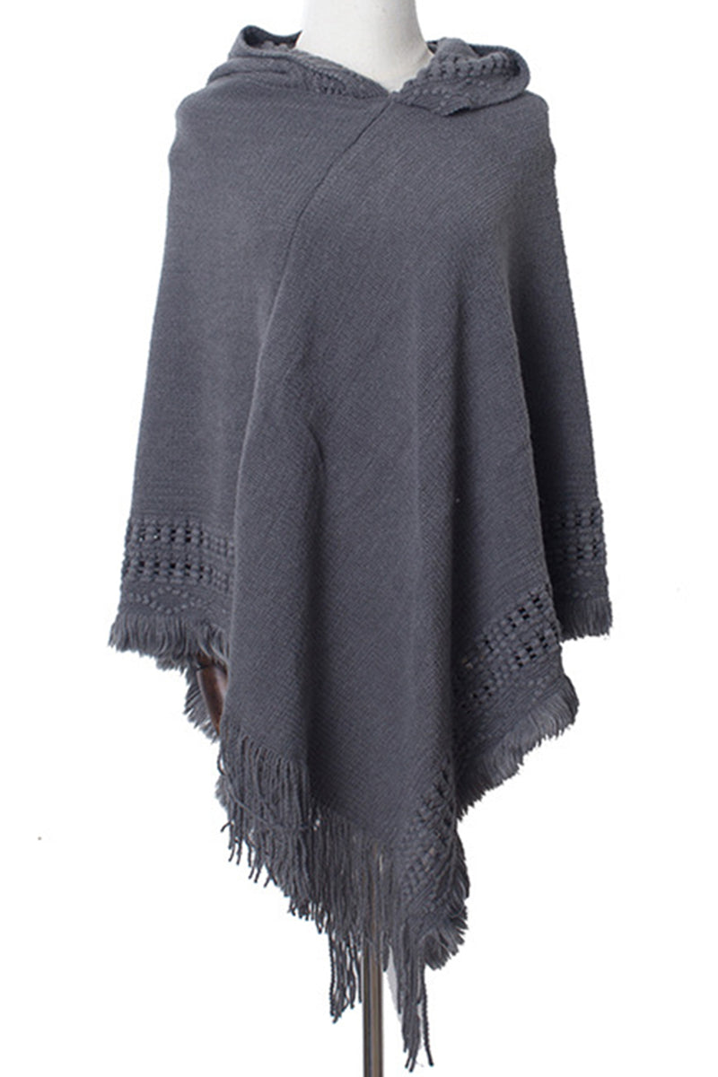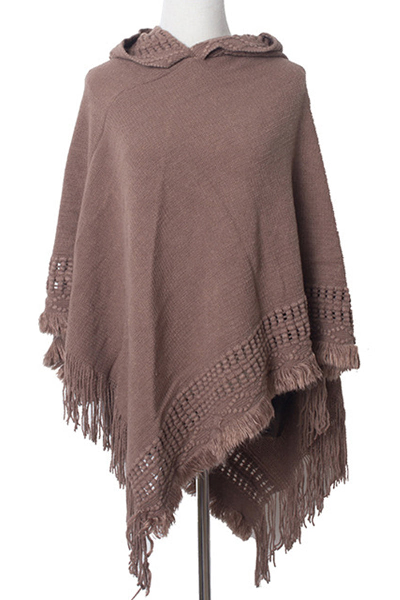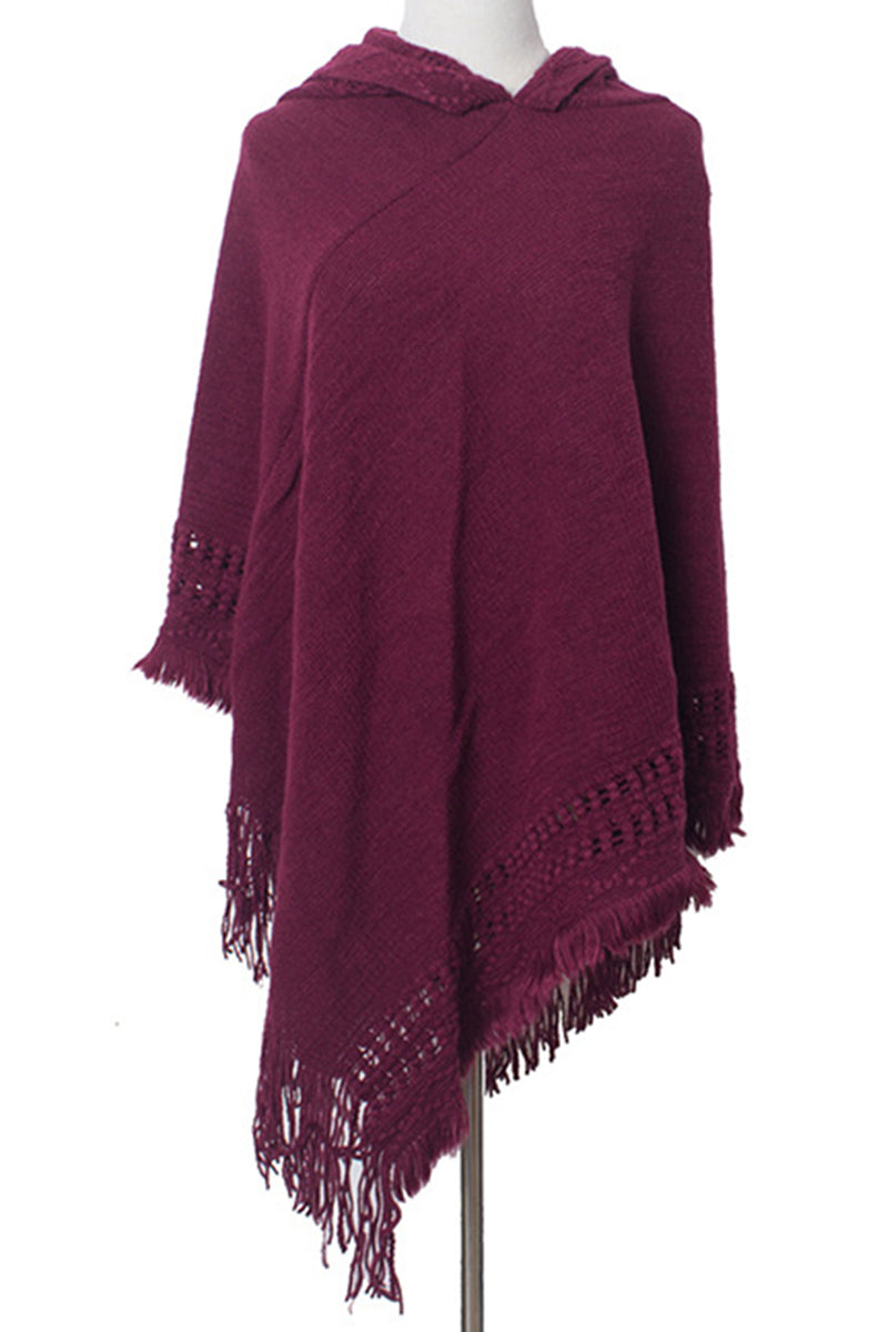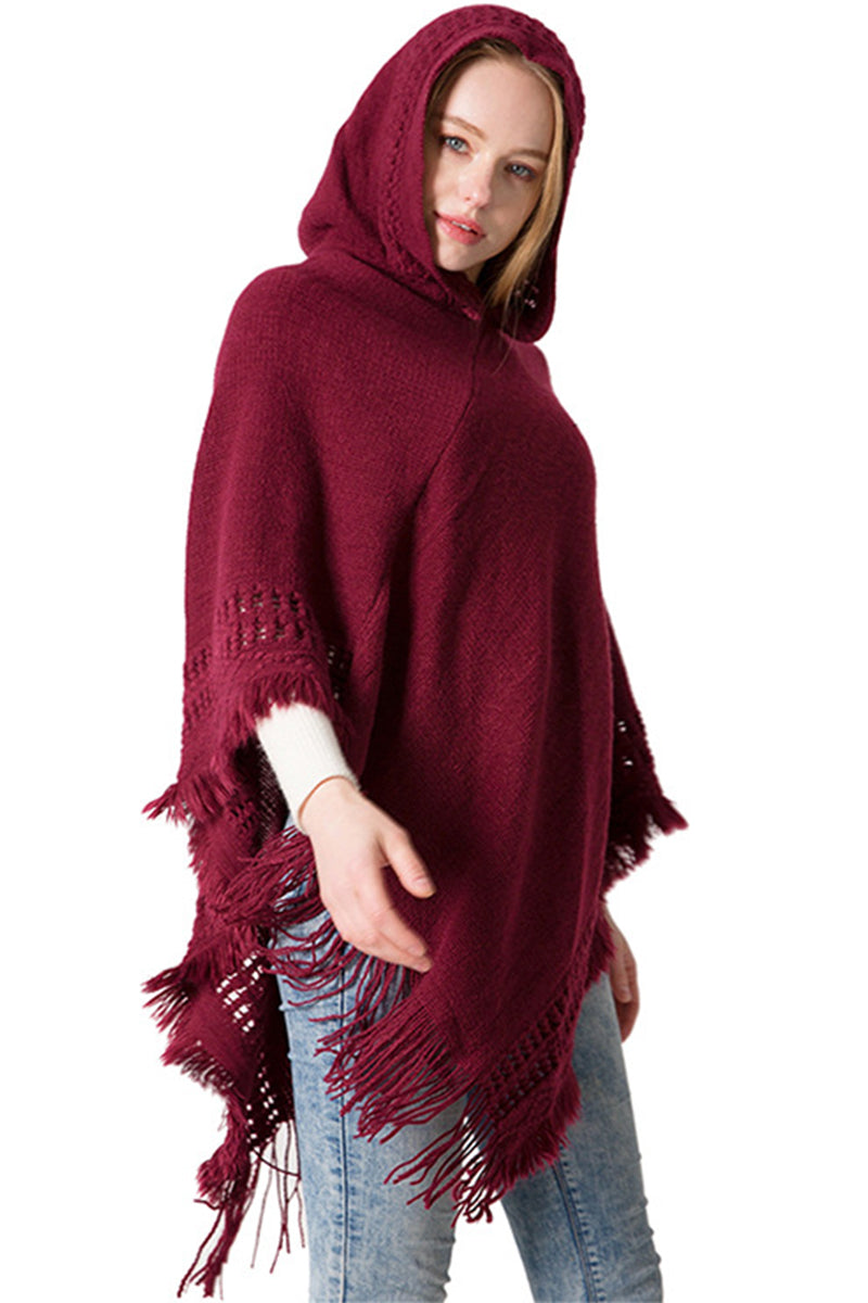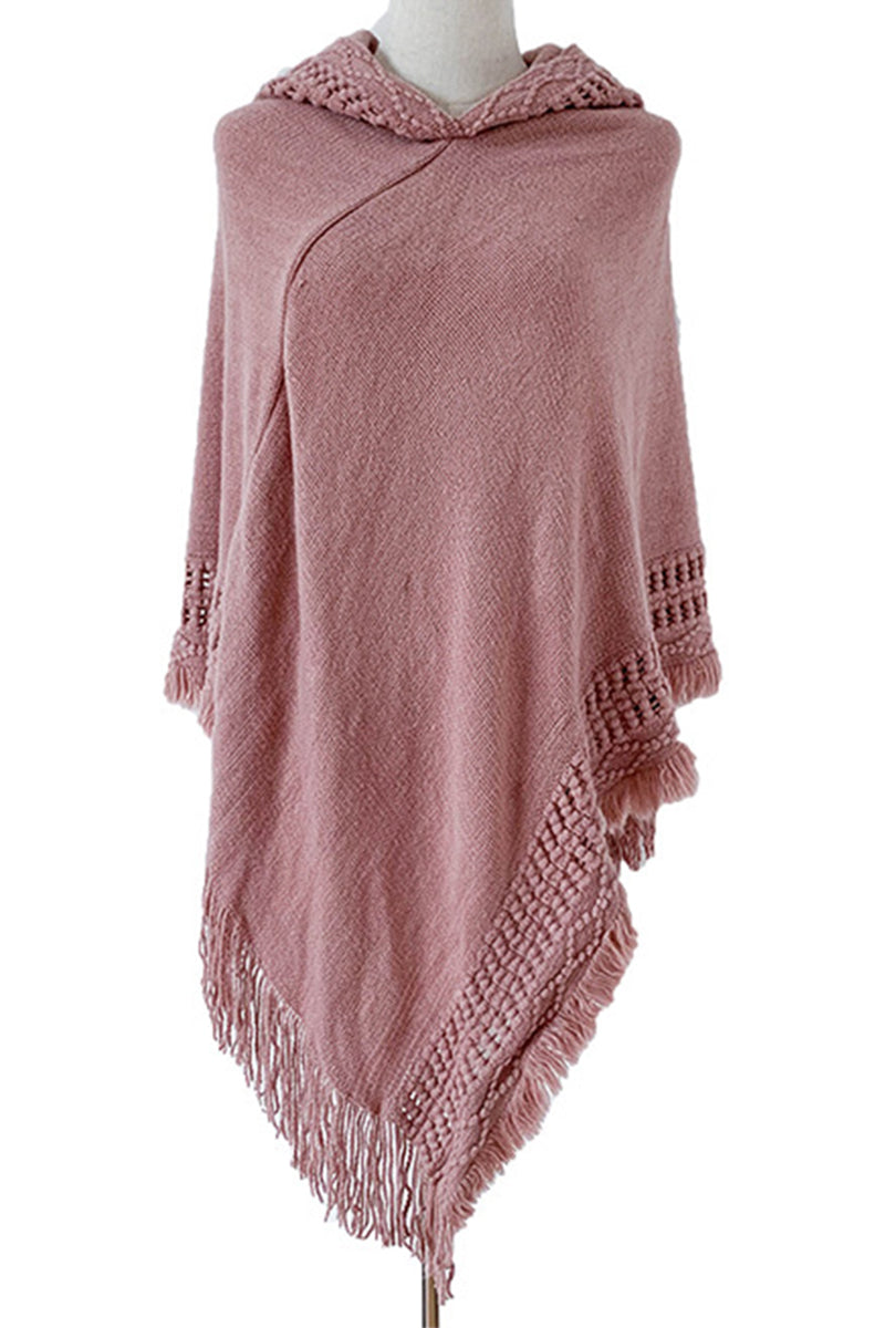WOMEN SOFT PULLOVER PONCHO SWEATER CAPE WITH HOOD