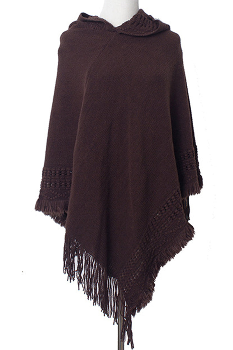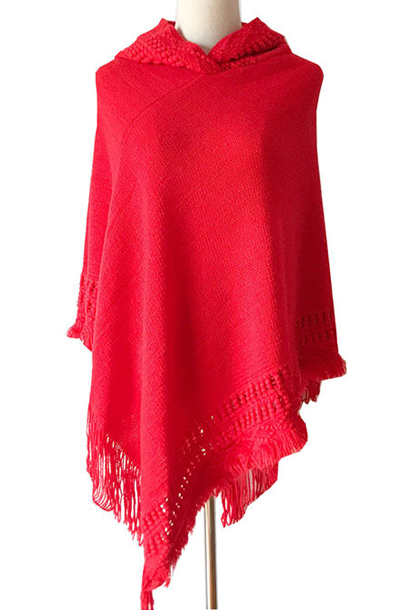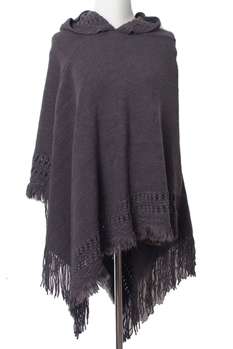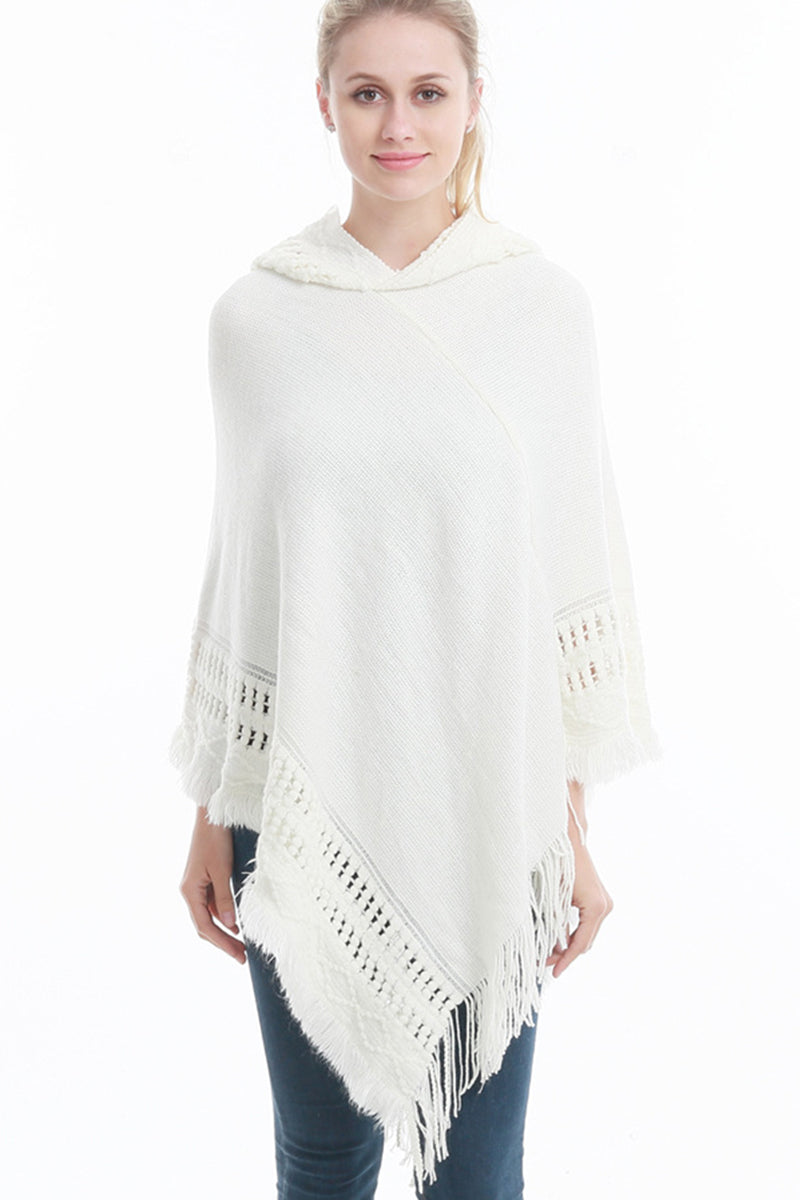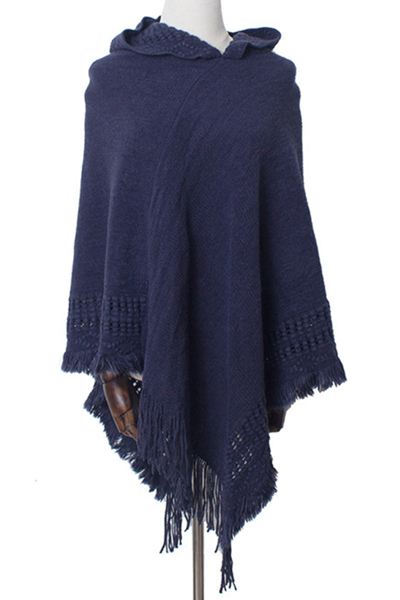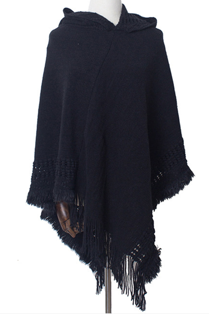 WOMEN SOFT PULLOVER PONCHO SWEATER CAPE WITH HOOD