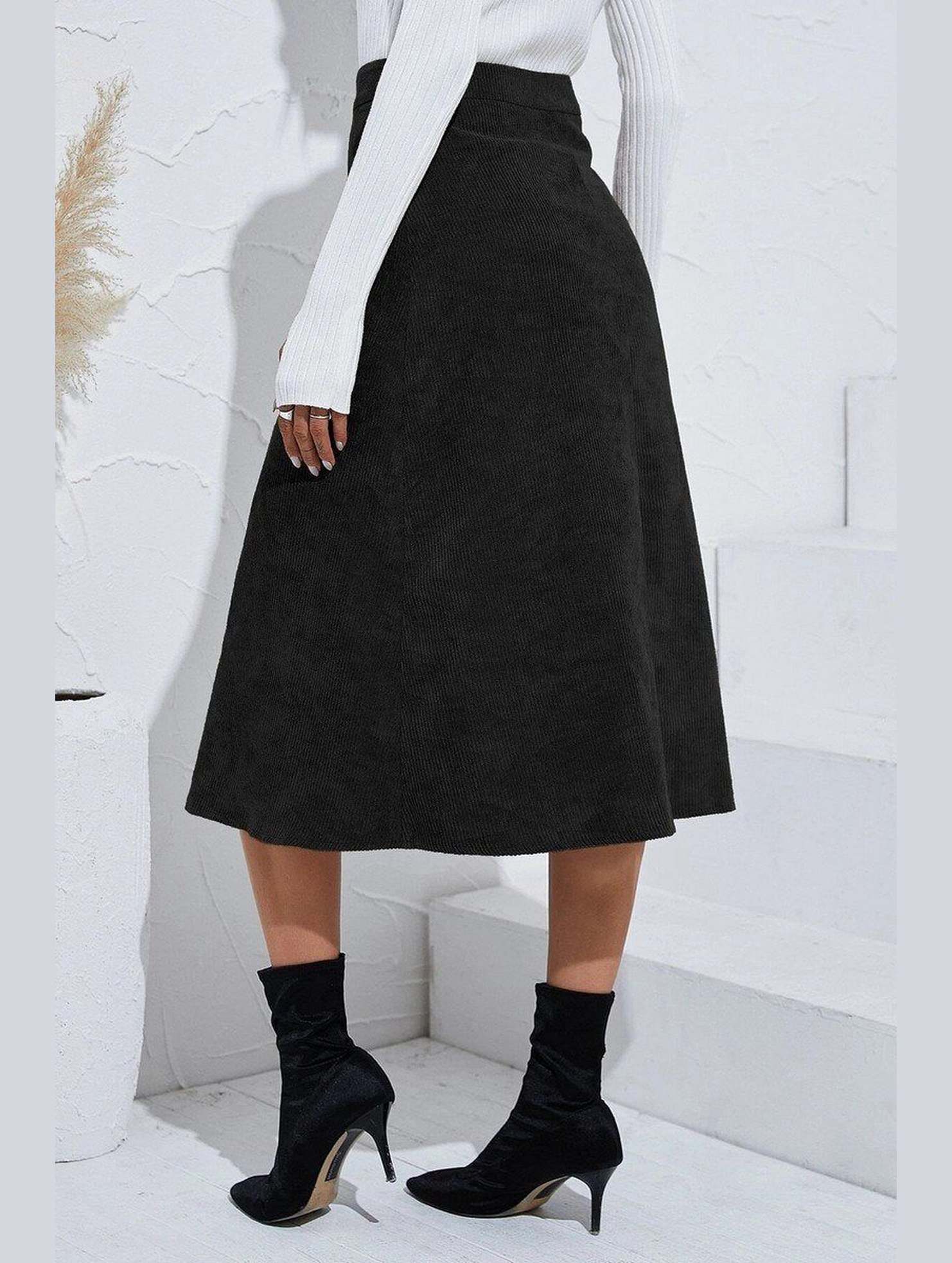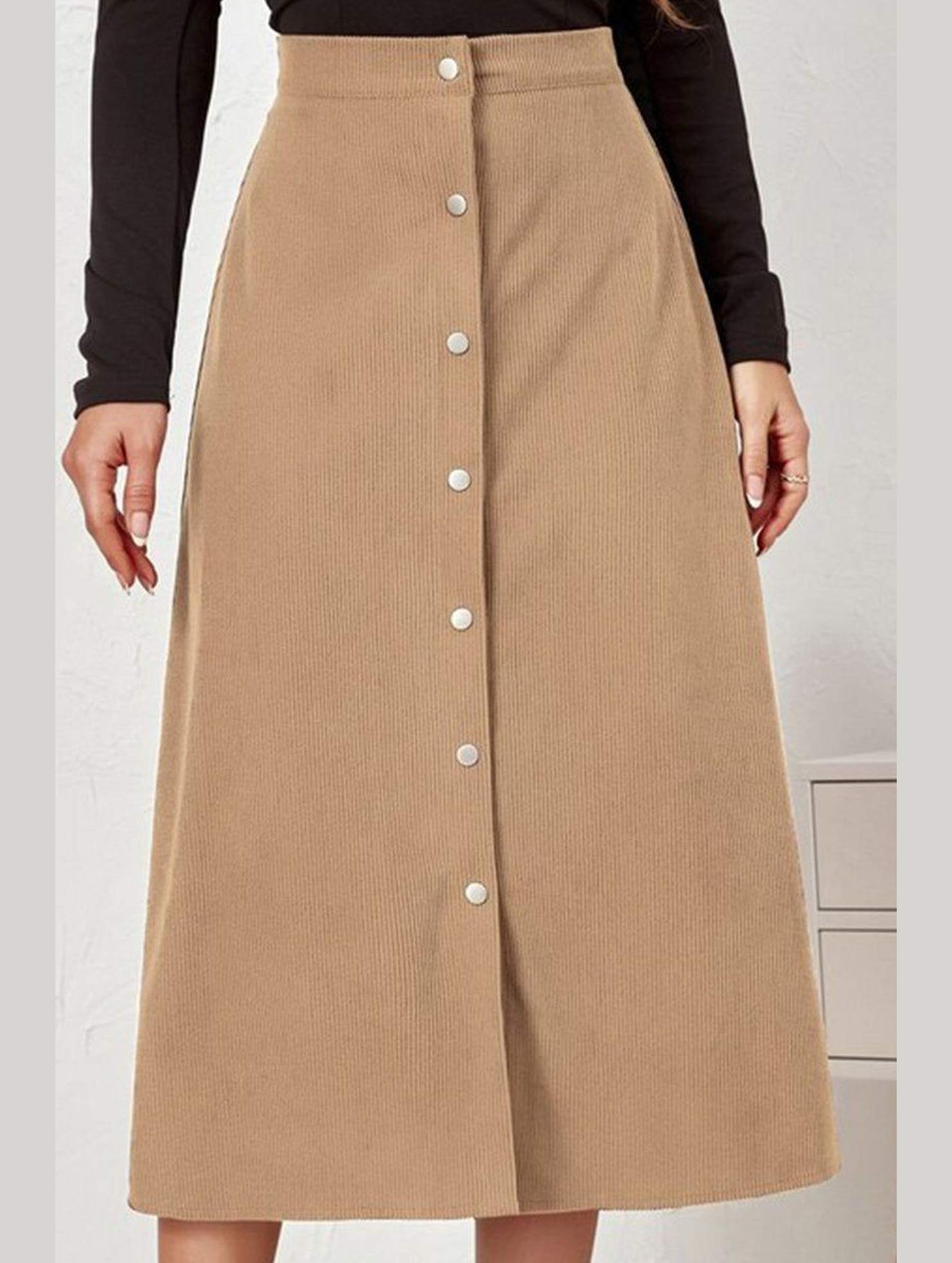 WOMEN FRONT BUTTON UP CORDUROY A LINE MIDI SKIRT