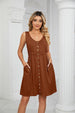 SLEEVELESS BUTTON POCKET SLIM WAIST DRESS