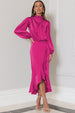 WOMEN ELEGANT LONG SLEEVE RUFFLE WRAP PARYT DRESS