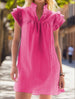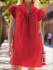 Multi-Layer Lotus Sleeve V-Neck Pullover Dress ??Elegant Women's Polyester Dress