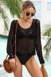 HOLLOW KNITTED LONG SLEEVE COVER UP SWIMWEAR