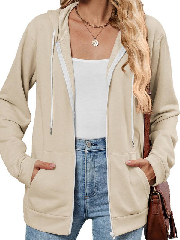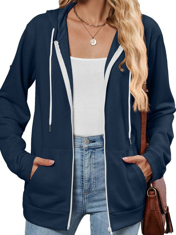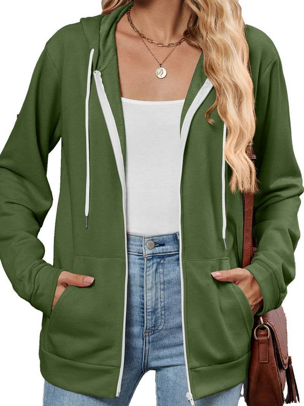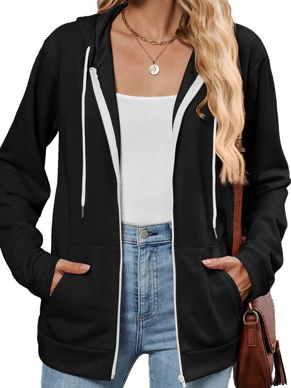 Designed to complement everyday outfits, the Cwocal00575_Contrast Color Zipper Hooded Pocket Sweatshirt brings a refined yet wearable feel.