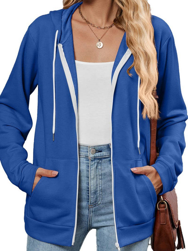The Cwocal00575_Contrast Color Zipper Hooded Pocket Sweatshirt delivers a polished look while remaining comfortable and functional.