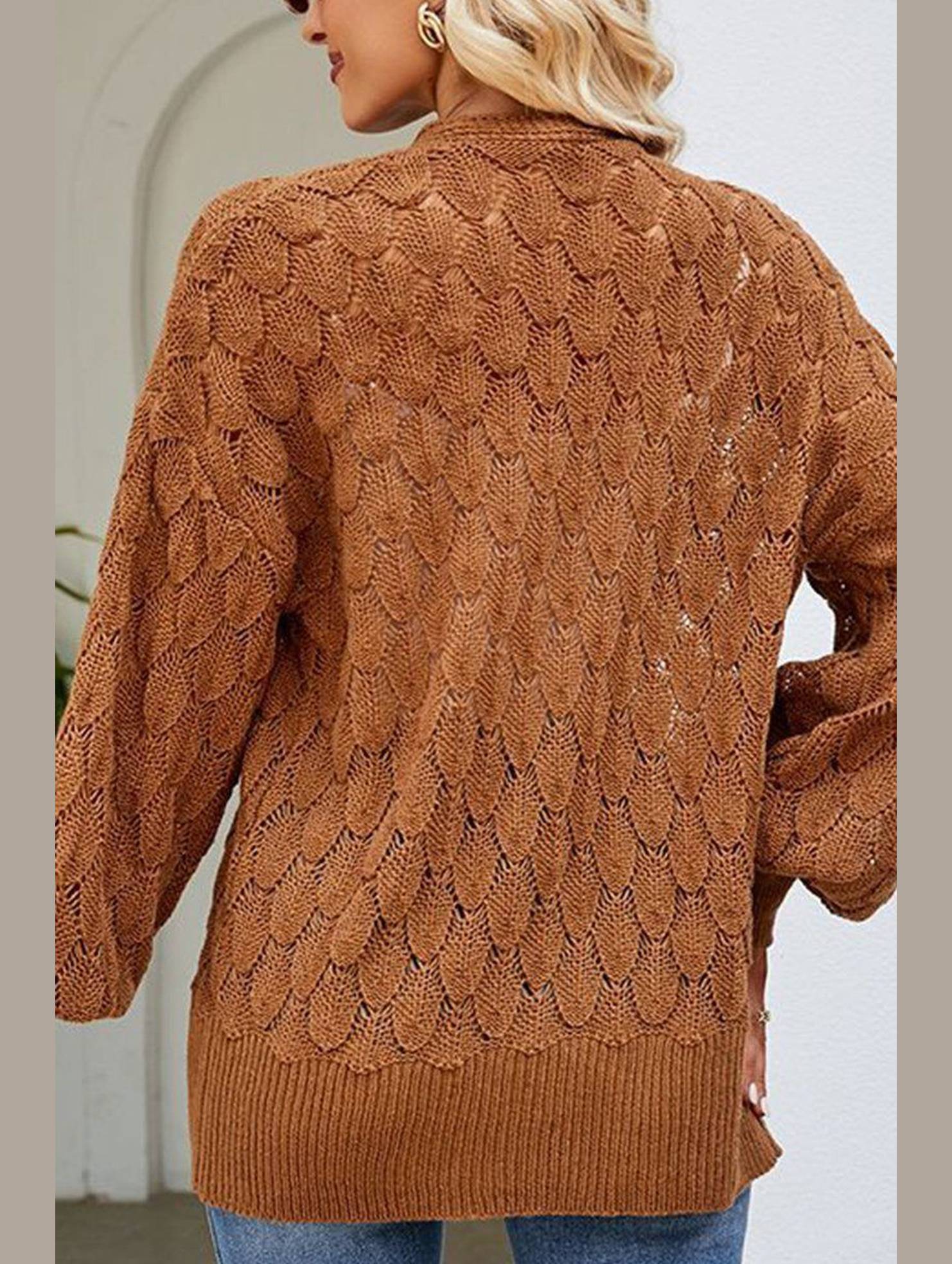 WOMEN HOLLOW OUT KNITTED SWEAT CARDIGAN