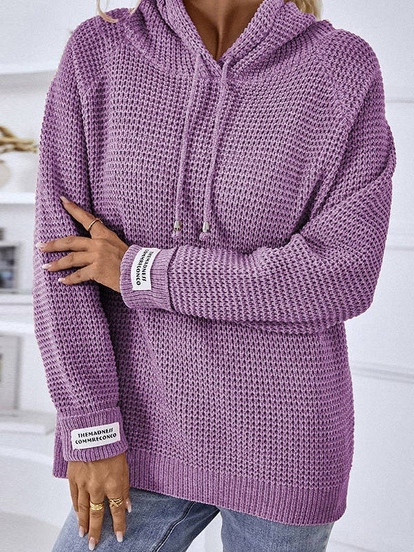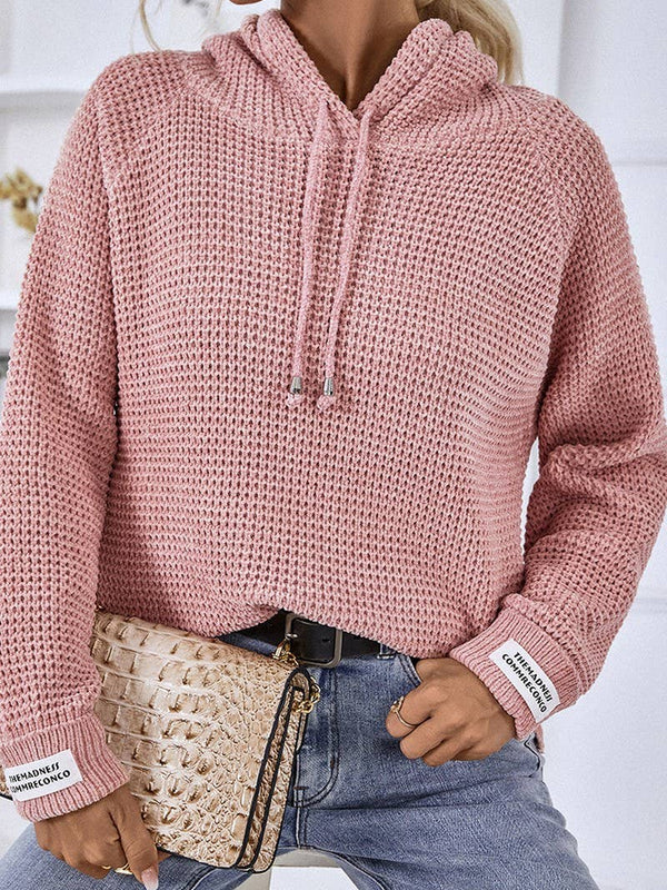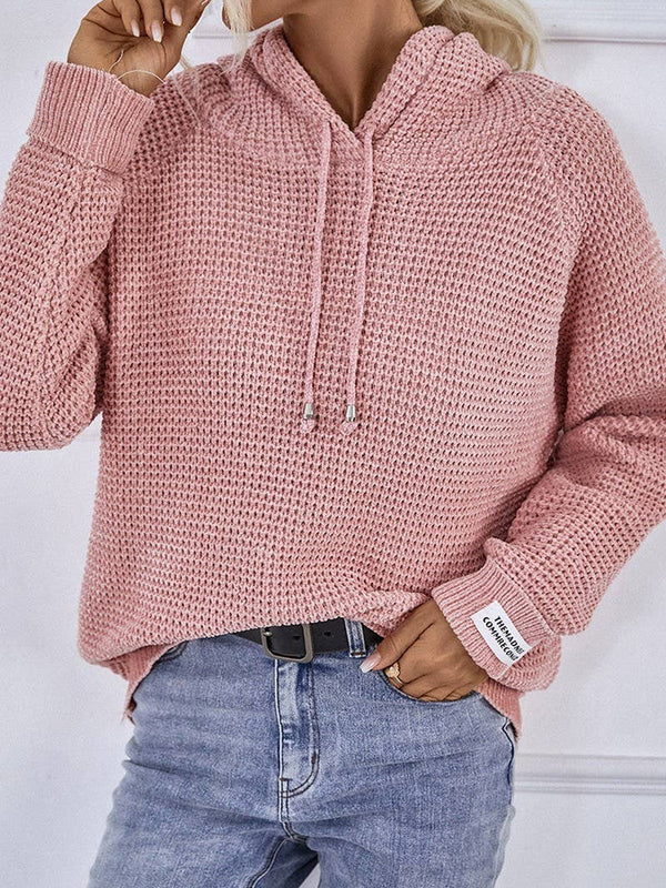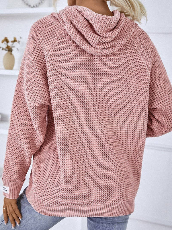 Cwohol0399_Casual V-Neck Hoodie Long Sleeve Sweater