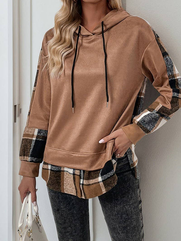 A versatile addition to your wardrobe, the Cwohol0906_Long-Sleeved Plaid Colorblock Hooded Sweatshirt works across multiple occasions.