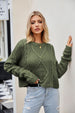 WOMEN CABLE KNITTED RIBBED ROUND NECK SWEAT TOP