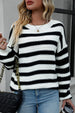 WOMEN OVERSIZED LOOSE FIT STRIPE RIBBED SWEATER