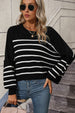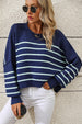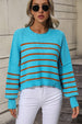 WOMEN STRIPE PATTERN RIBBED KNIT JUMPER TOP