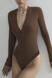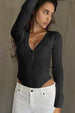WOMEN BUTTONED V NECK LONG SLEEVE BODYSUIT