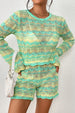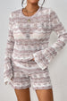 WOMEN KNITTED LONG SLEEVE TOP AND SHORTS SET