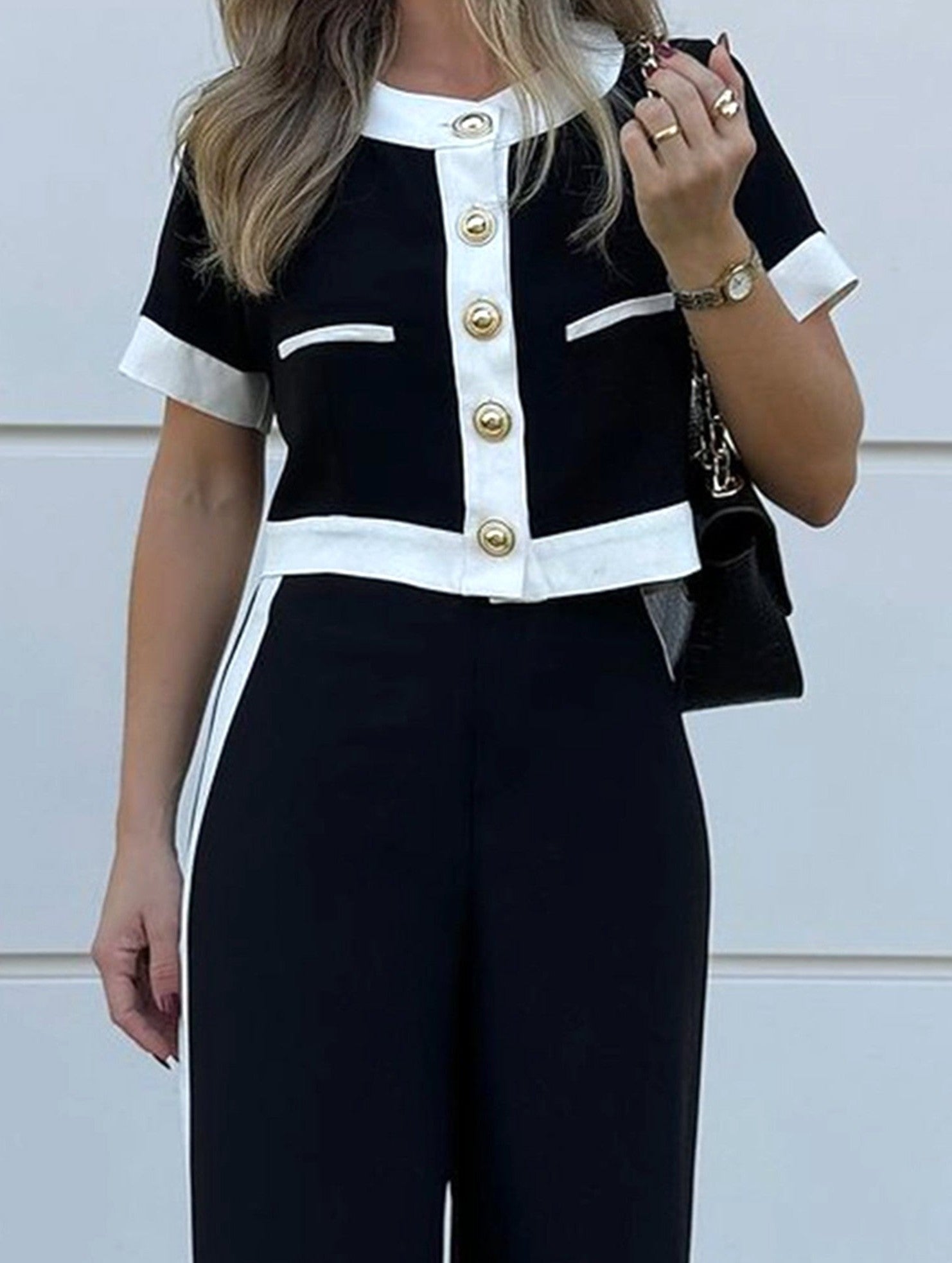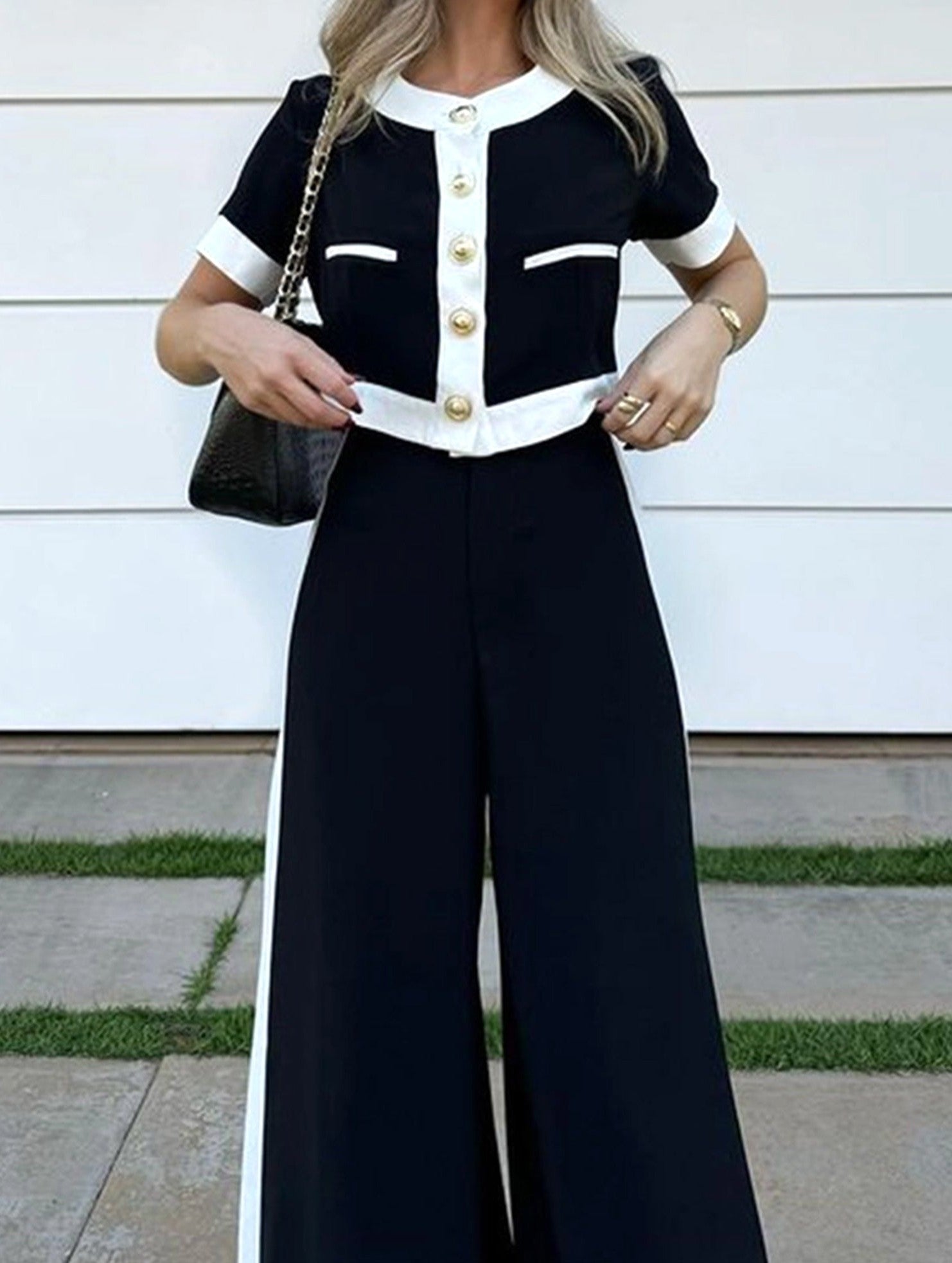 Short Top Straight Leg Two-Piece Set ??Casual Chic Matching Set for Women