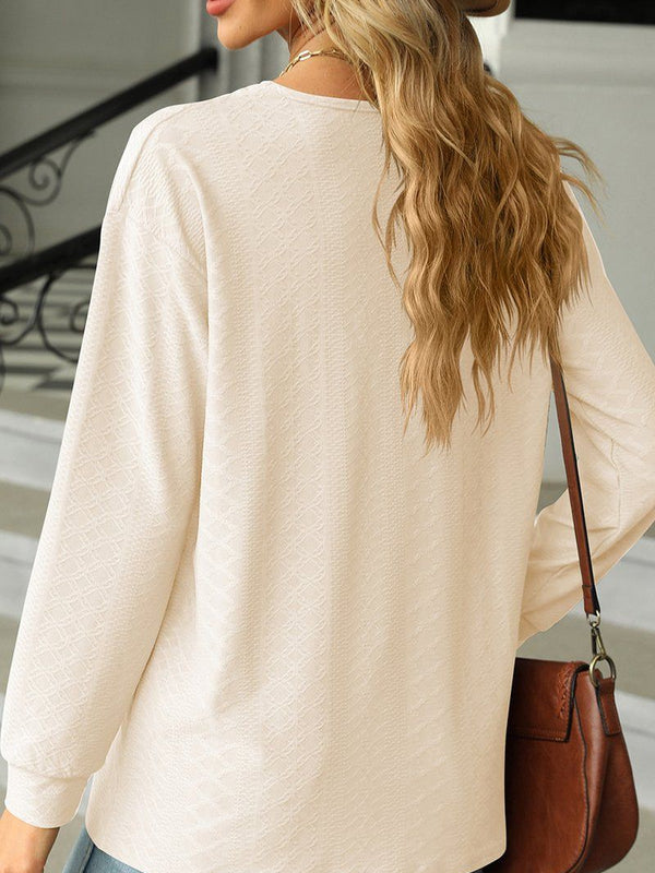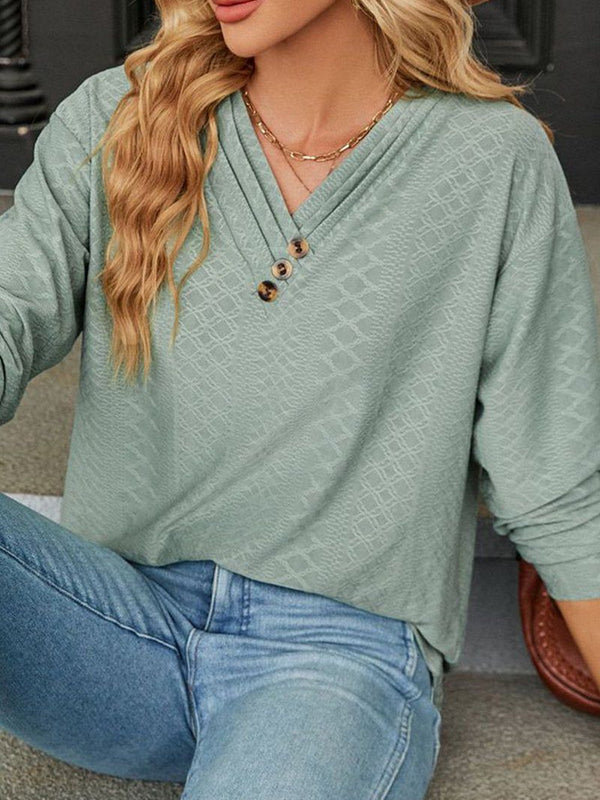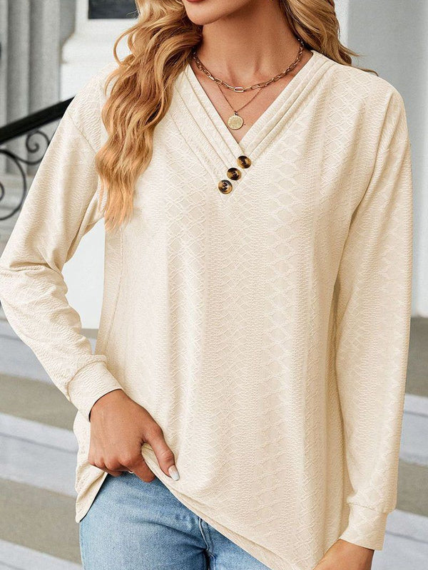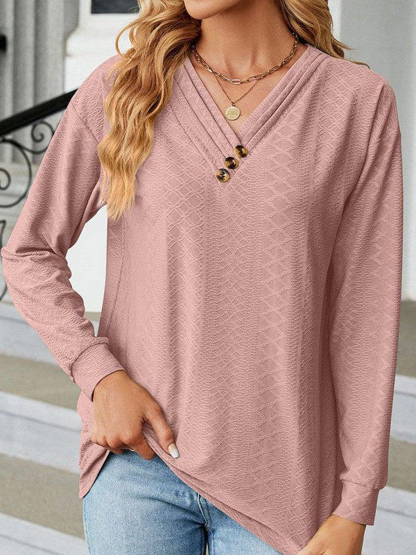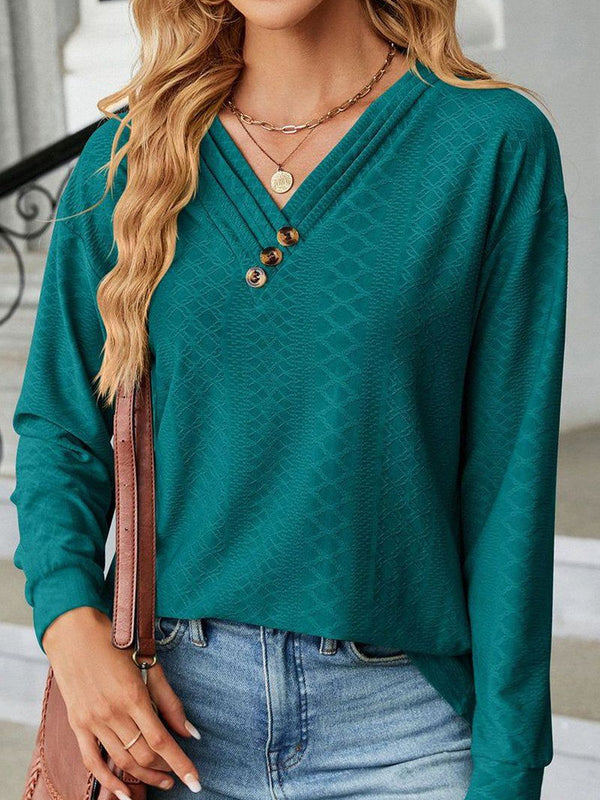 Designed to complement everyday outfits, the Button Decked V Neck Pattern Stitched Blouse_Cwtbll0154 brings a refined yet wearable feel.