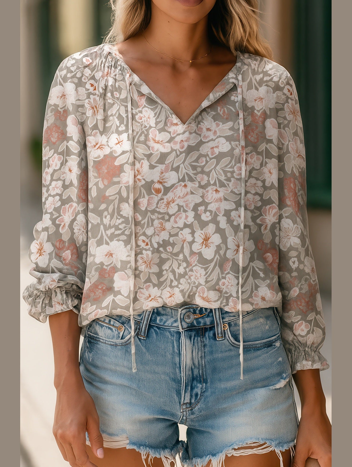 Floral Printed V-Neck Shirt ??Lightweight Elegant Women's Top