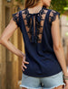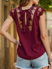 MESH LACE POINT CAP SLEEVE CHIFFON BLOUSE