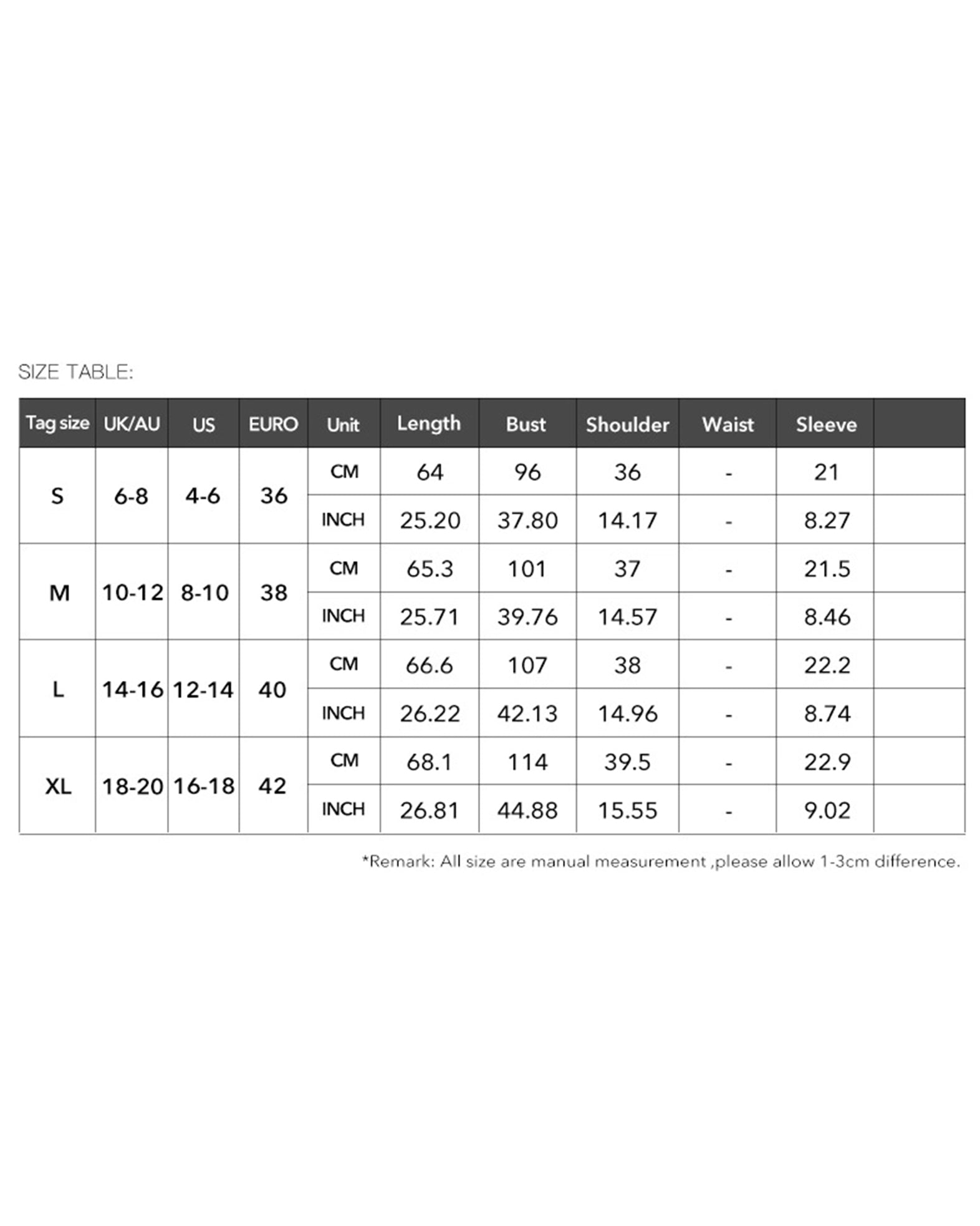 Sleeves: Short sleeves (or sleeveless if applicable)