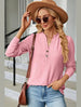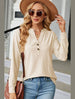Women V Neck Button Jacquard Loose Fit Top_Cwtstl0288