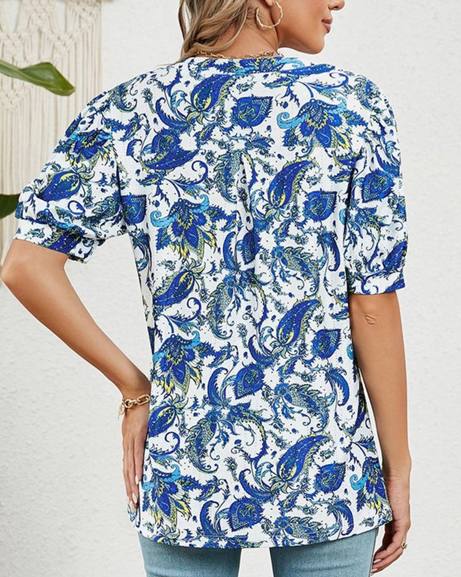 V-Neck Loose Short Sleeve Printed T-Shirt ??Comfortable & Trendy Casual Wear