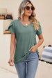 PUNCHING LACE TULIP PUFF V NECK T-SHIRTS