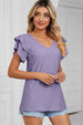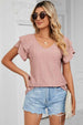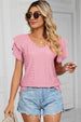 PUNCHING LACE CAKE PUFF V NECK T-SHIRTS