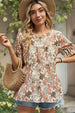 PATTERNED LOUND NECK CAKE CHIFFON TOP