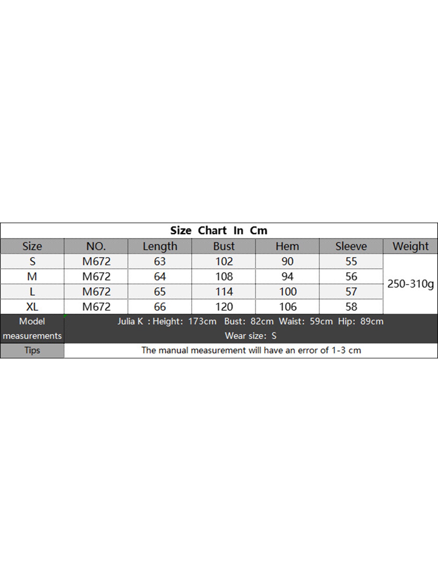 Description & Size Chart