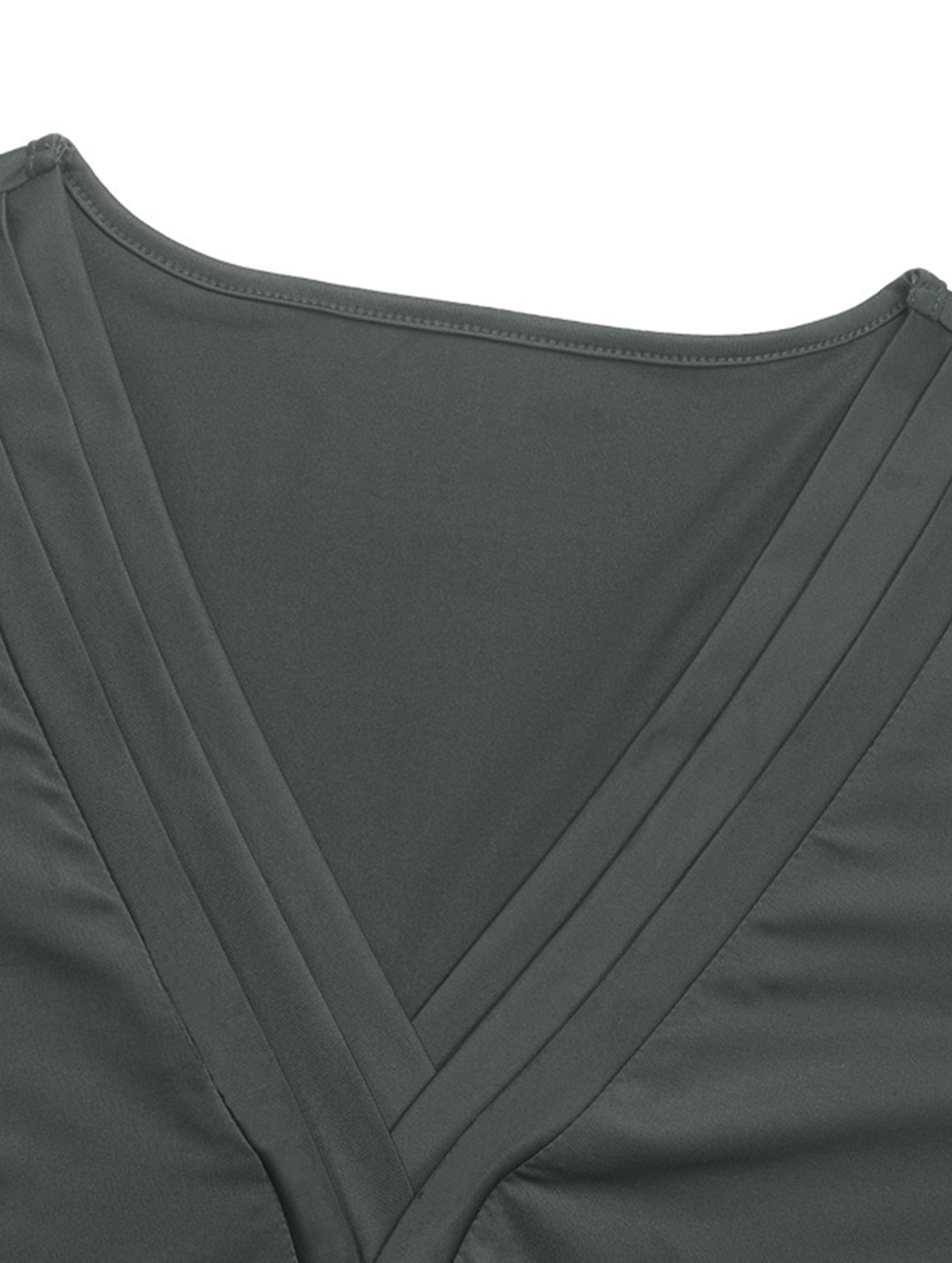 DEEP V-NECK PLEATED SOLID COLOR SIMPLE TOP