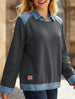 Denim collar long-sleeved patchwork shirt