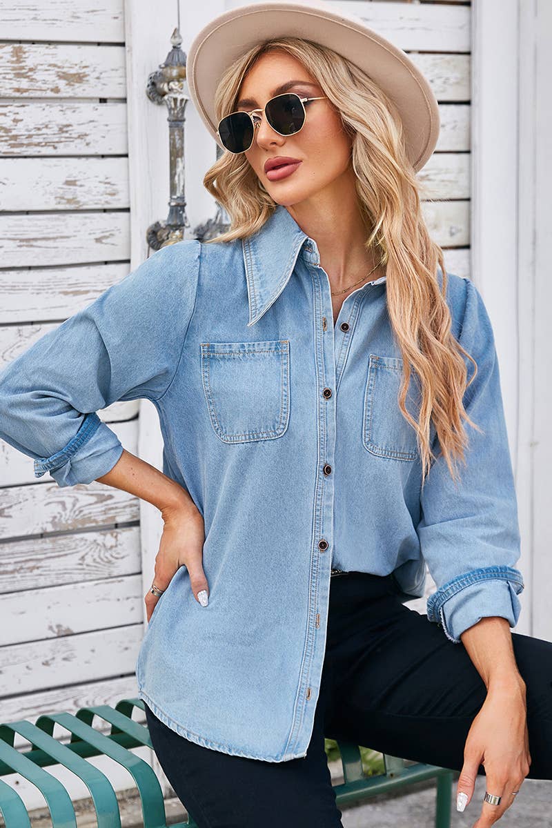 DENIM LONG SLEEVED SHIRT TOP_CWTSTL1055