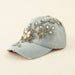 DIAMOND EMBELLISHED DISTRESSED DENIM BASEBALL CAP CWAH1390