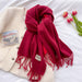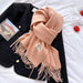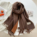 The Double Sided Faux Cashmere Scarf Solid Color Shawl adds a refined touch with its clean and modern silhouette.