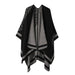 A polished essential, the Double Sided Plaid Faux Cashmere Shawl Cape transitions seamlessly from casual to elevated looks.