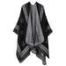 Experience versatile styling with the Double Sided Plaid Faux Cashmere Shawl Cape, crafted to adapt effortlessly.