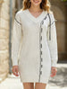Drawstring V-neck loose knit sweater dress for women_CWDSD11611