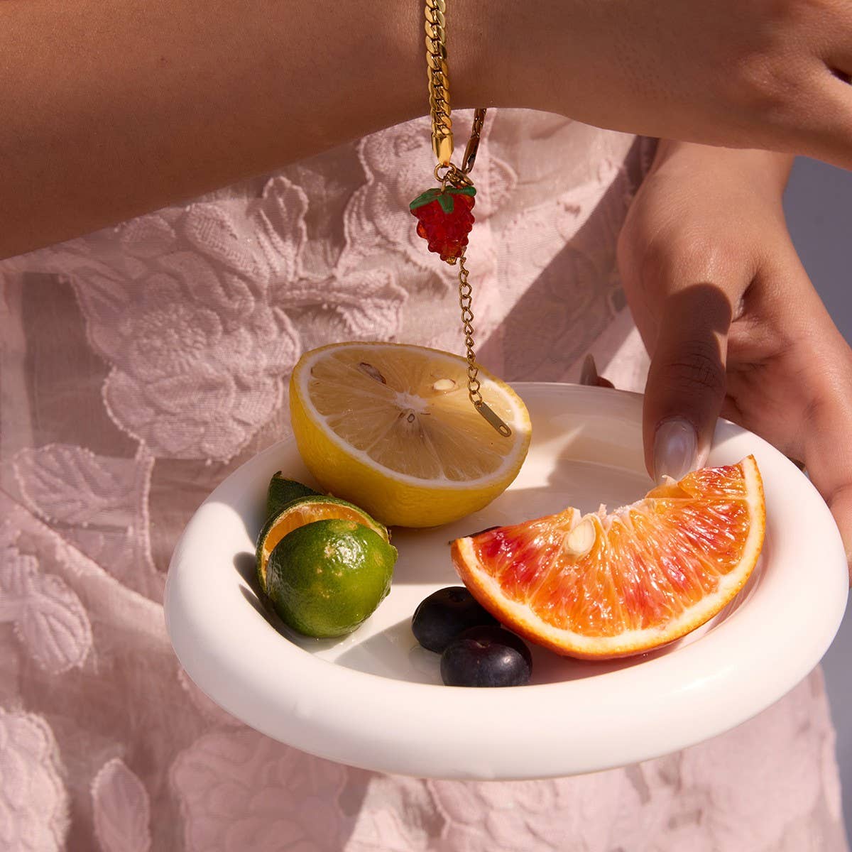 The Elegant 18K Gold Flat Chain With Red Glass Charm brings a fresh balance of structure and ease into your wardrobe.