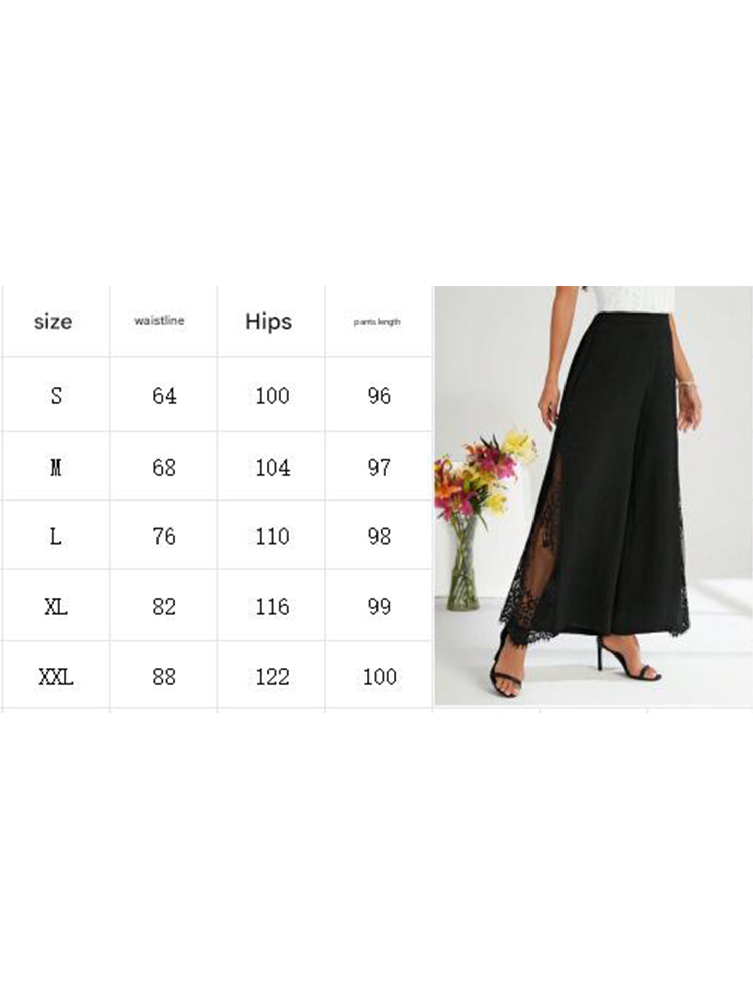 With a clean silhouette and easy wearability, the Elegant lace-trimmed high-waisted casual wide-leg pants fits seamlessly into your rotation.
