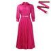 Experience versatile styling with the Elegant Lapel Solid Color Wide Hem Pleated Dress, crafted to adapt effortlessly.