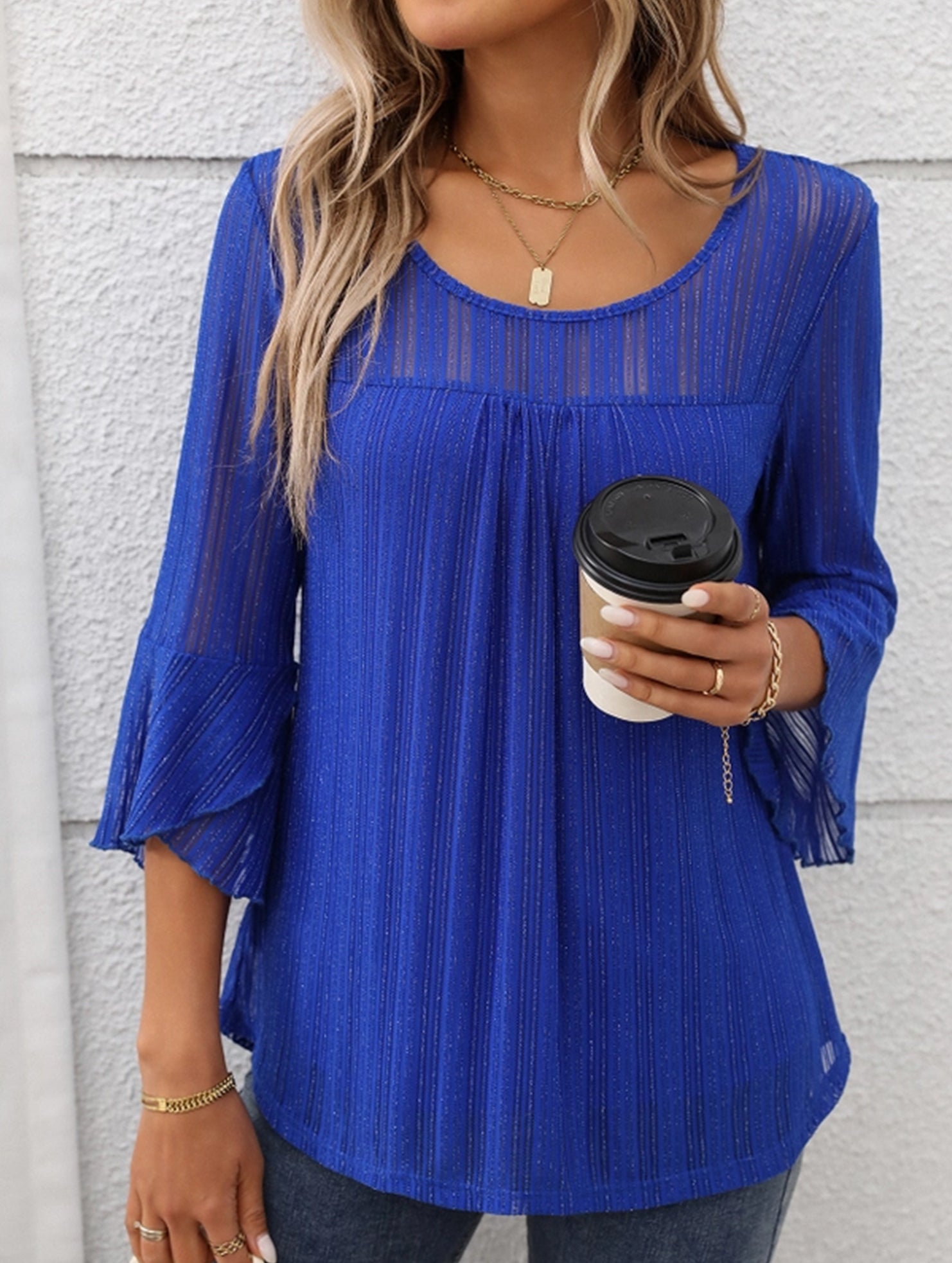 xElegant Round Neck Lotus Sleeve Glitter Gauze Top ??Sparkle with Grace and Comfort
