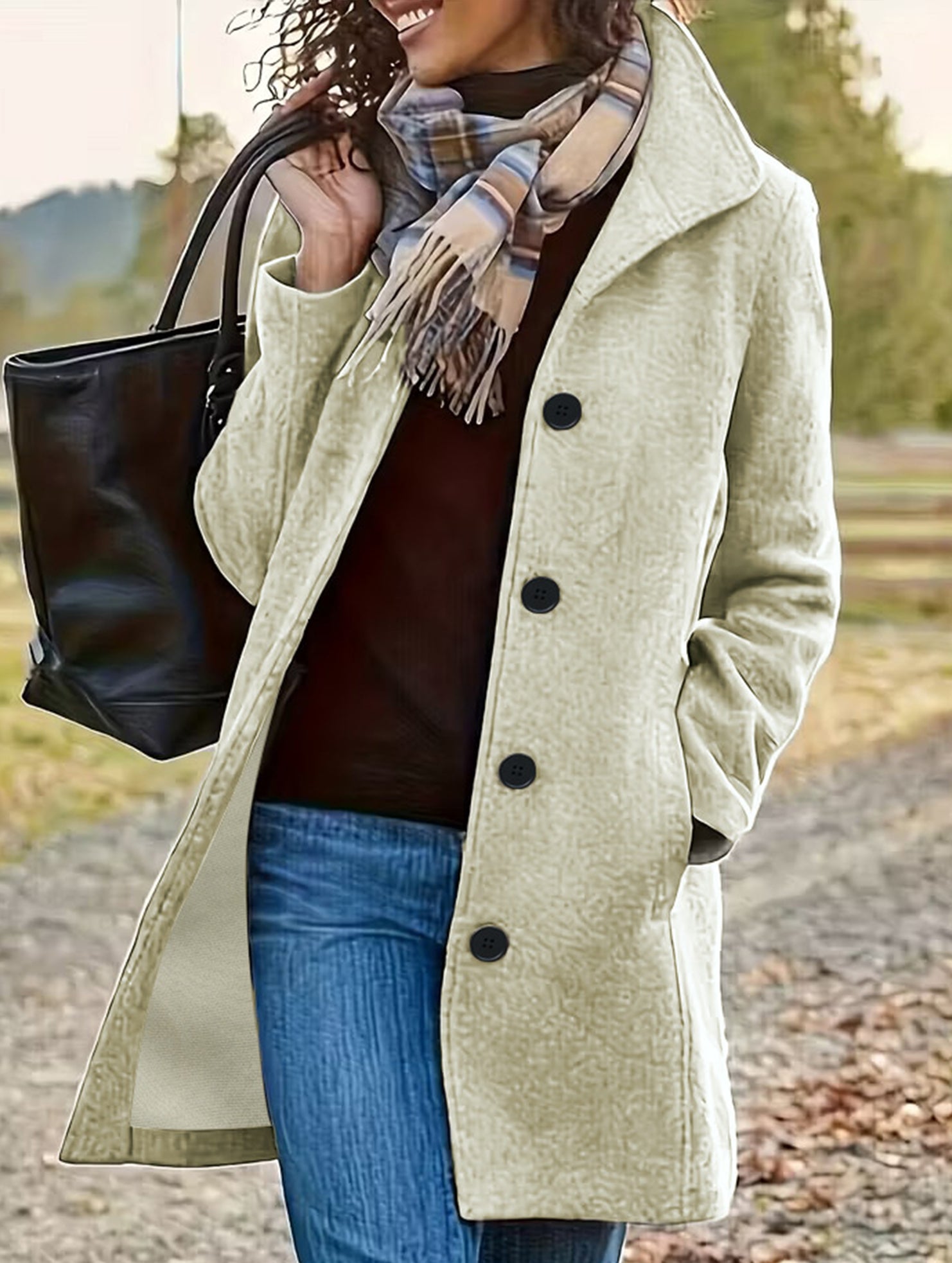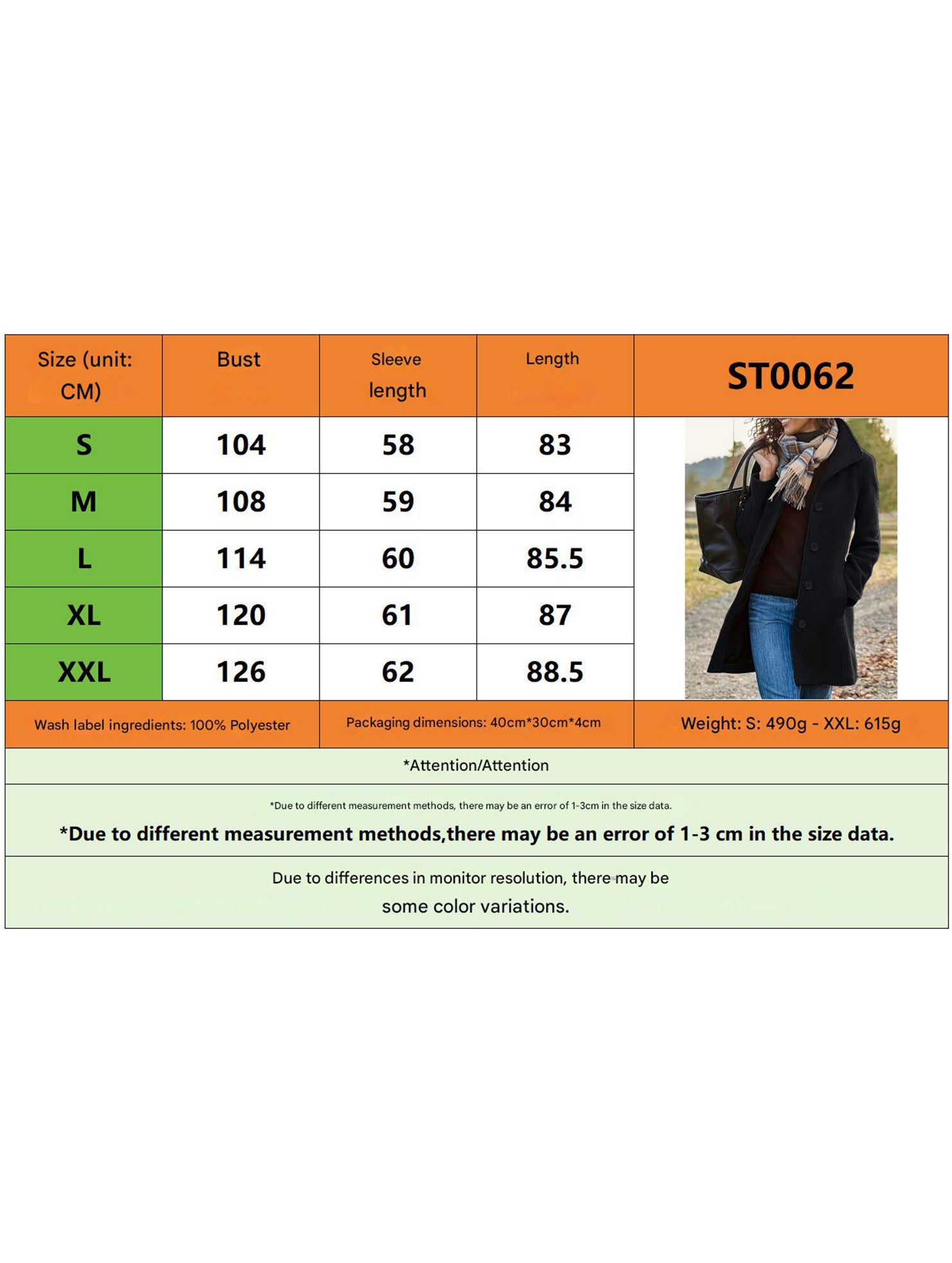 This wool coat adds a touch of brightness to your everyday outfits with its simple and elegant design. The solid color and clean lines create a modern and versatile look. High-quality wool fabric ensures warmth without bulk, while exquisite tailoring gives it a slimming silhouette. It's the perfect finishing touch, instantly elevating any style and showcasing sophistication and fashion.