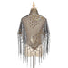 Experience versatile styling with the Ethnic Classic Peacock Tassel Triangle Shawl, crafted to adapt effortlessly.