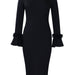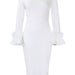 FASHION SOLID COLOR HIPWRAPPED FLARED SLEEVE DRESS_CWDMD3663
