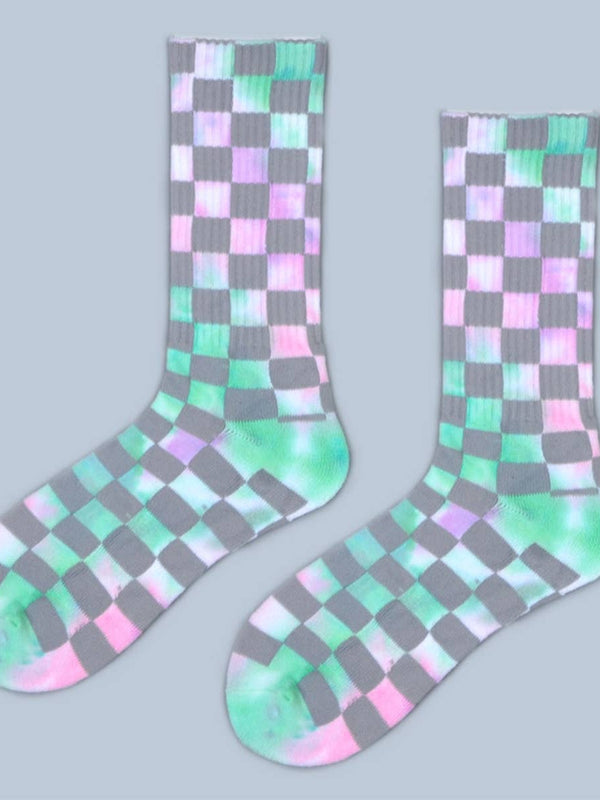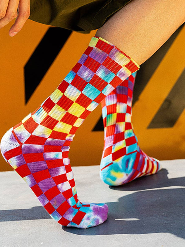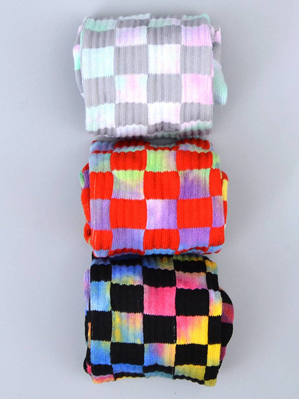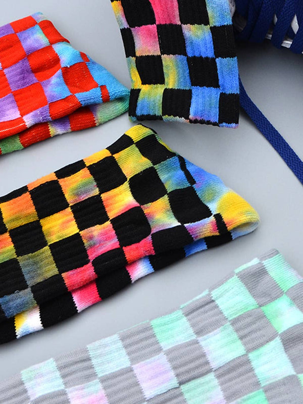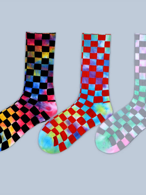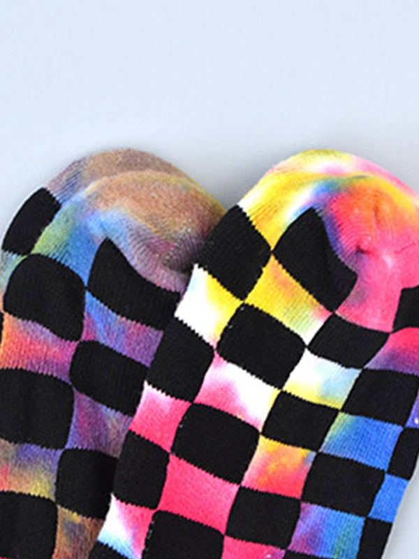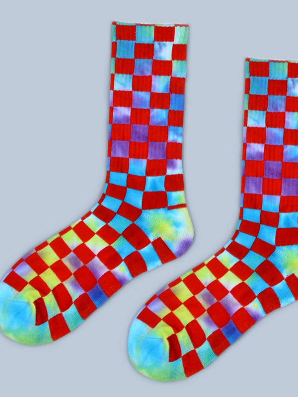 FASHION TIE DYED CHECKERED SOCKS_CWMS0265