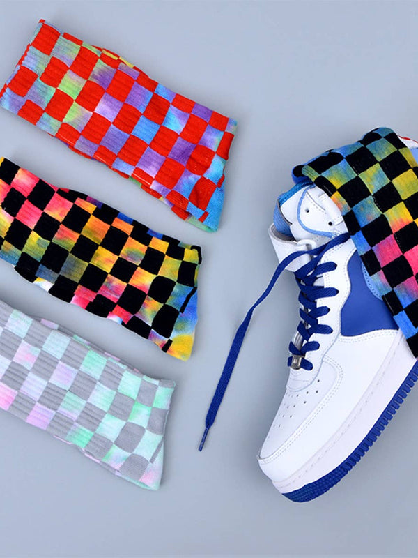 The Fashion Tie Dyed Checkered Socks adds a refined touch with its clean and modern silhouette.