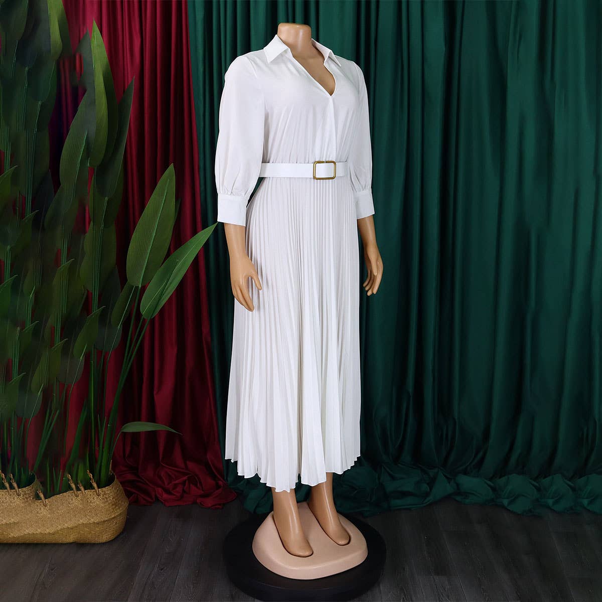 FASHION V NECK SOLID COLOR PLUS SIZE DRESS_CWDMD3647