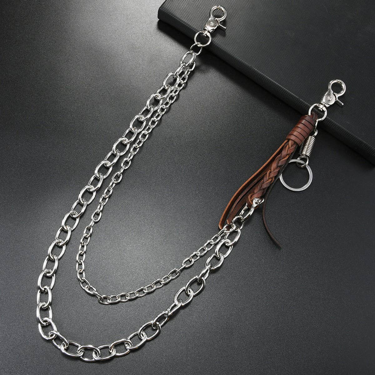 The Fashionable Cowhide Braided Tassel Pants Chain adds a refined touch with its clean and modern silhouette.
